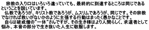 | したがって、結果だけを望む事なく日頃の精進が肝要である。 | ||||||||