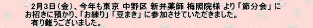 | 2月3日、東京・中野 新井薬師 梅照院様の「節分会」に、お招きに預かり | ||||||||||||||||||||||||||||||||||||||||||||||||||||||||||||||